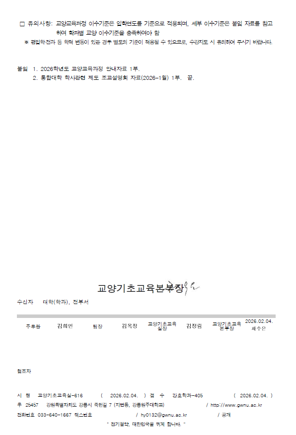 [중요]2026학년도 적용 교양교육과정 개편 사항 및 경과조치 알림