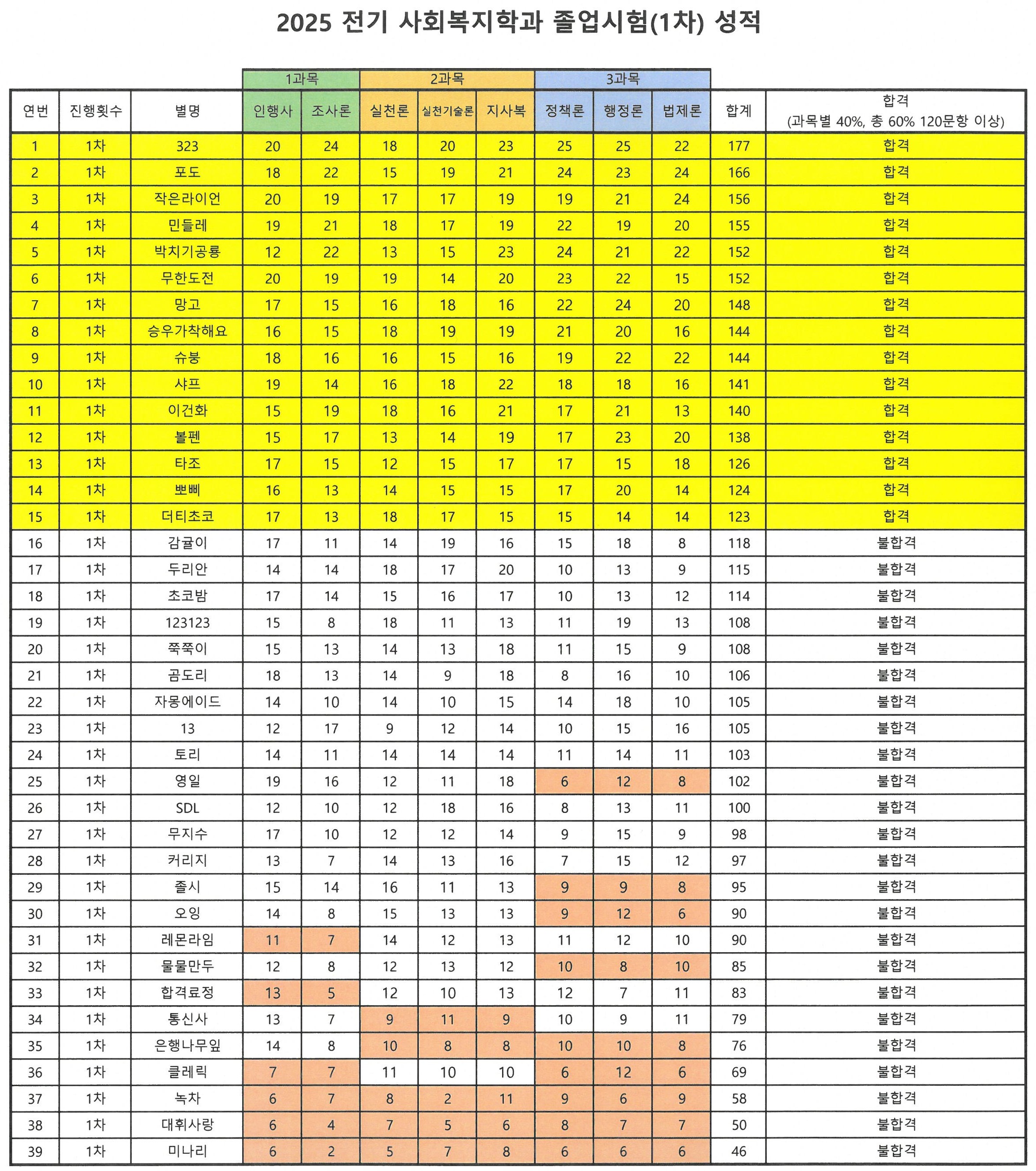 2025학년도 전기 졸업시험(1차) 결과 안내